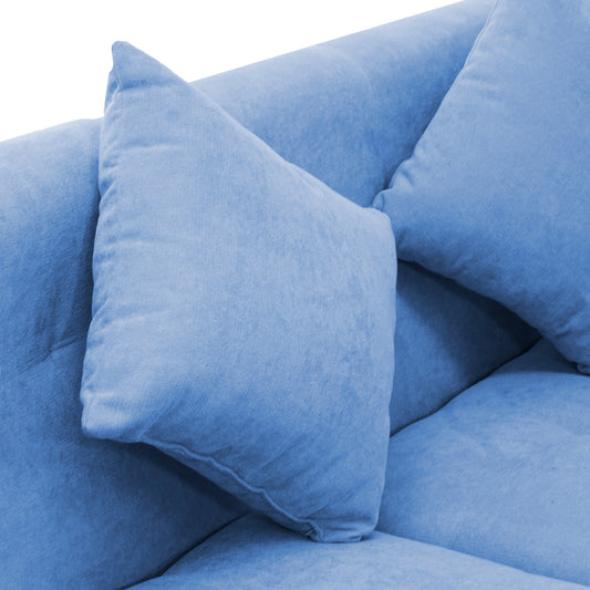 Seccional Paris + 2 Pouf- Tela (Lino Soft) Azul