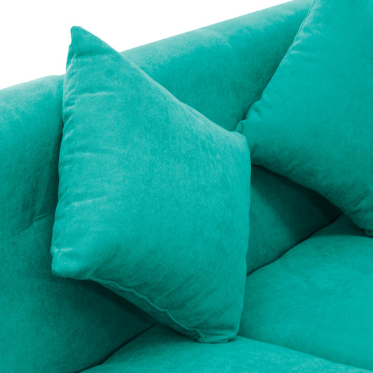Seccional Paris + 2 Pouf - Tela (Lino Soft) Turquesa